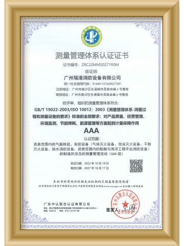 測量管理體系認證證書